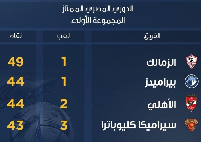 - أما بيراميدز في المركز الثاني برصيد 44 نقطة.