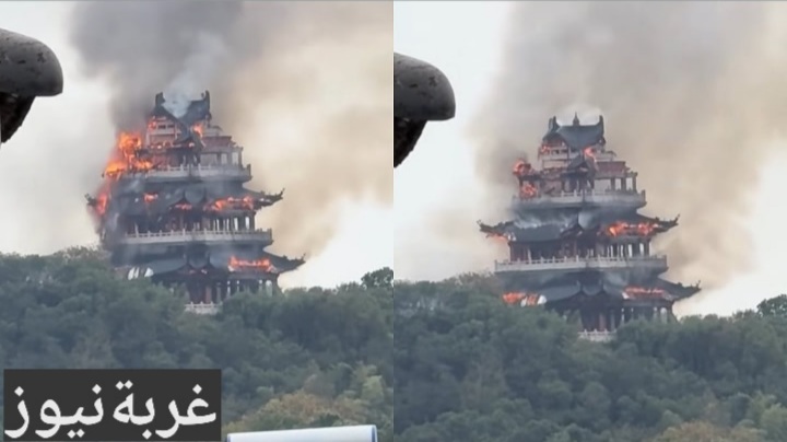 وهو نسخة حديثة مطابقة للمبنى التاريخي، إلى رماد في أقل من ساعة بينما غطى دخان كثيف سماء جبل فينغهوانغ، أحد أبرز الوجهات السياحية.