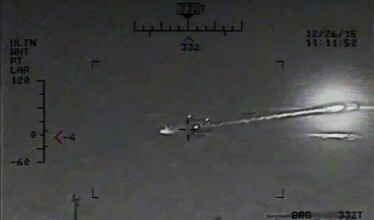 بثت البحرية الأميركية شريط فيديو قالت إن طائرة هليكوبتر تابعة لها صورته يُظهر سفينة تابعة للحرس الثوري الإيراني تطلق صواريخ غير موجهة في 26 ديسمبر/كانون الأول قرب سفن حربية من بينها حاملة الطائرات الأميركية هاري إس ترومان في مضيق هرمز.