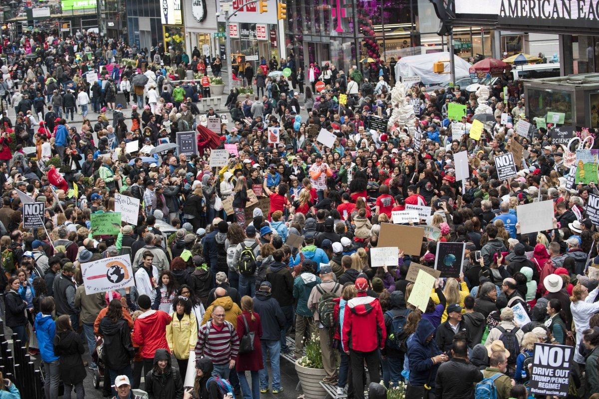 وتزامنت المظاهرات التي أقيمت في عدة مدن أمريكية، مع الاحتفال بيوم الأرض، لتسلط الضوء على تساؤلات ترامب بشأن التغير المناخي واقتراحه خفض ميزانية البرامج العلمية الاتحادية.