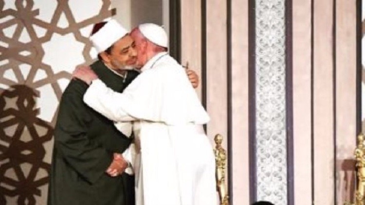 وعلق بابا الفاتيكان على الصورة قائلا، “ولنؤكد سويا استحالة الخلط بين العنف والإيمان، بين الإيمان والكراهية”.