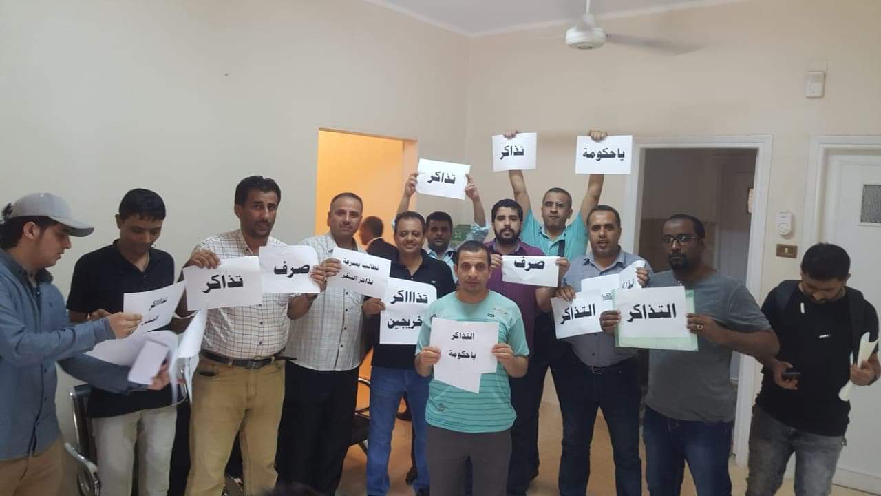 نظم الطلاب اليمنيين الخريجين من الجامعات المصرية يوم ا مس الاربعاء وقف ة احتجاجية طالبوا الحكومة اليمنية بسرعة صرف تذاكر سفر لهم ولعوائلهم ، تأتي هذه الوقفة الاحتجاجية نتيجة لعدم استجابة الحكومة للمناشدات والمذكرات السابقة التي رفعت بهذا الخصوص،