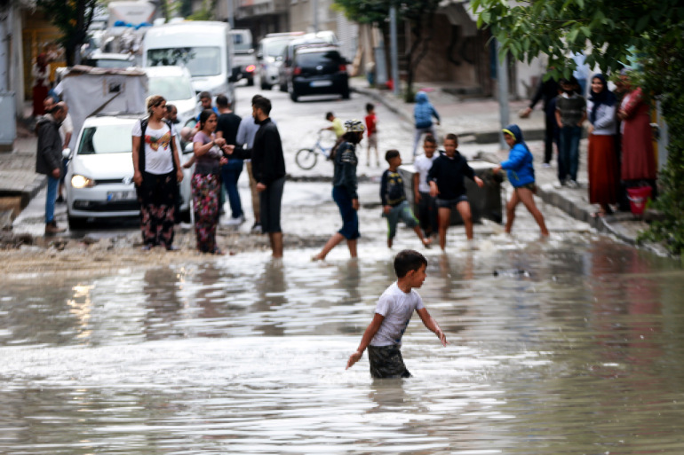 وأضاف أن فرق الطوارئ أنقذت ثلاثة أطفال سوريين حاصرتهم المياه في منزلهم بالطابق الأرضي بأحد الأبنية السكنية في منطقة أسنيورت بالشطر الأوروبي من إسطنبول.