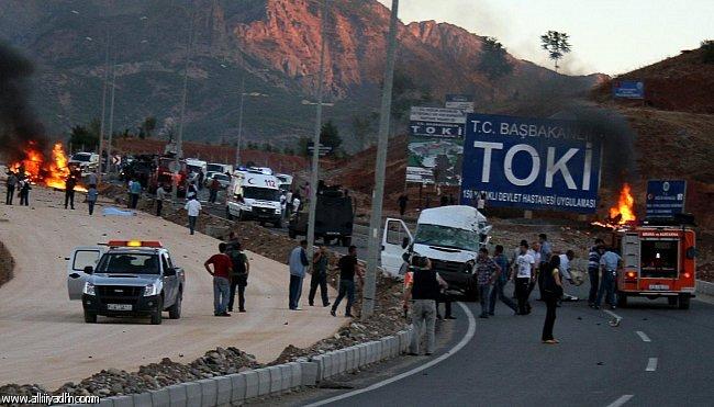 شاركها فيسبوك تويتر لينكدإن بينتيريست البريد الإلكتروني أوضحت مصادر أمنية أن هجوماً بسيارة ملغومة وصاروخ نفذه مسلحو حزب العمال الكردستاني اليوم الجمعة أدى إلى مقتل شرطيين وإصابة 35 شخصاً بجنوب شرق تركيا. شارك هذا الموضوع: شارك على فيس بوك (فتح في نافذة جديدة) فيس بوك المشاركة على X (فتح في نافذة جديدة) X معجب بهذه:إعجاب تحميل... مرتبط
