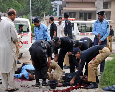 وذكرت وسائل الاعلام الباكستانية أن 3 رجال شرطة آخرين على الأقل أصيبوا خلال الحادث.
